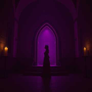 Medieval Gothic music in a dark wave style, with female vocals and whispering female choirs, instrumental music including cello, duduk, violins, timpani, and tuba.